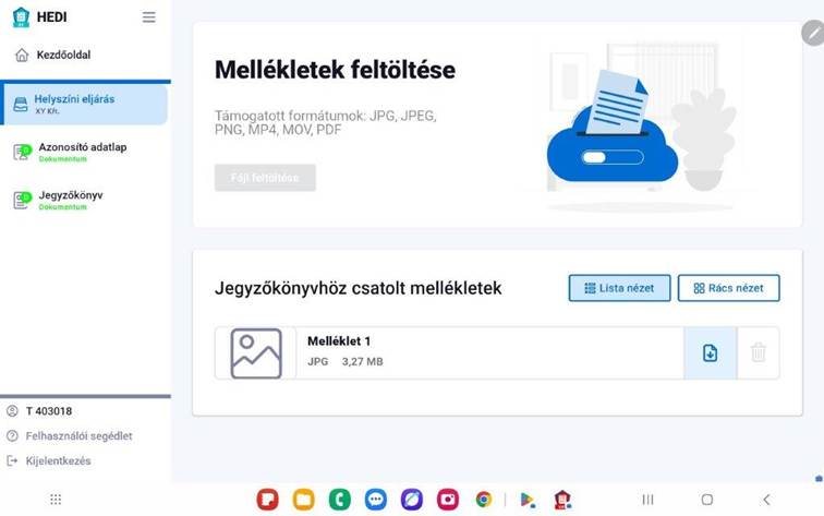 Eddig még nem esett szó arról, hogy a HEDI milyen eszközt használ a jegyzőkönyvek felvételére. Az eszköz kiválasztása esetében alapvető szempont volt, hogy az eszköz ne foglaljon sok helyet, mindennapi használata ne legyen kirívó, és annak láttán az adózók ne tudjanak arra következtetni, hogy a NAV adóellenőreit látják. Mindezek figyelembevételével a HEDI-rendszer egy tabletre optimalizált űrlapkitöltő alkalmazás. A tablethez tartozik aláíró toll, valamint billentyűzet is. Más eszközre a jegyzőkönyv elkészítéséhez és az adózó részére történő átadásához nincs szükség.